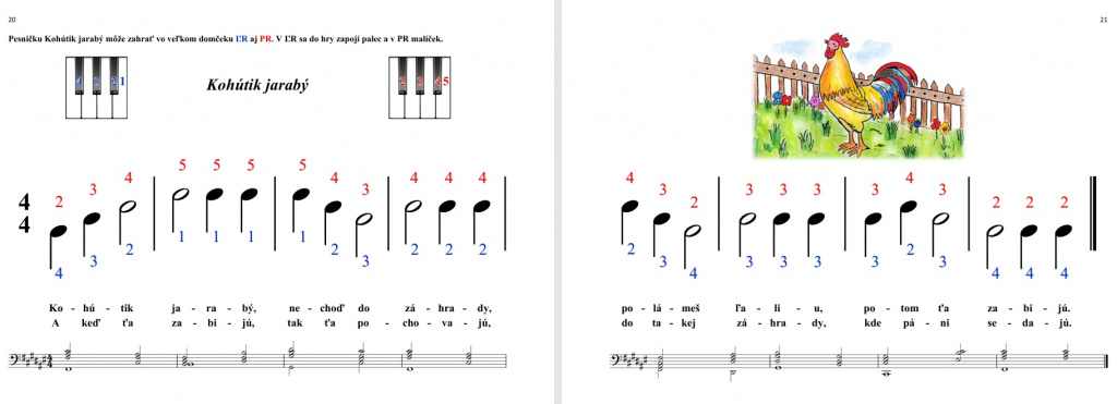 Kniha „Klavírne pršteky I. diel na základe slovenských ľudových piesní“ je publikácia určená pre deti, rodičov a pedagógov, ktorí sa zaoberajú základmi klavírnej hry. Je postavená na slovenských ľudových piesňach, ktoré sú známe, melodické a pre deti ľahko zapamätateľné. Sleduje určitý metodický postup v poznávaní nôt v husľovom aj v basovom kľúči. Vysvetľuje hodnoty nôt, hudobné pojmy, dynamiku a poukazuje aj na artikulačné spôsoby klavírnej hry v striedaní pravej a ľavej ruky. Publikácia je vhodná ako prípravné štúdium hry na klavíri v základných umeleckých školách a dospelým záujemcom môže pomôcť pri samoštúdiu. Kniha zaujme svojím obsahom, formou a inovatívnosťou.
