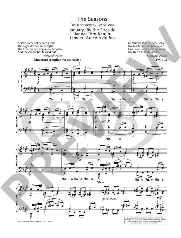 „Ročné obdobia“ patria medzi najpoužívanejšie klavírne diela P. I. Čajkovského, pretože sú rovnako vhodné pre pokročilých študentov hry na klavír aj pre nadšencov. Revidované nové vydanie v sérii „Piano Classics“ s predslovom od Thomasa Kohlhaseho a poznámkami k interpretácii od Leva Vinocoura.