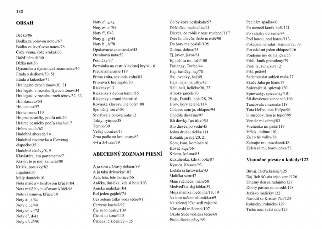 Kniha „Klavírne pršteky I. diel na základe slovenských ľudových piesní“ je publikácia určená pre deti, rodičov a pedagógov, ktorí sa zaoberajú základmi klavírnej hry. Je postavená na slovenských ľudových piesňach, ktoré sú známe, melodické a pre deti ľahko zapamätateľné. Sleduje určitý metodický postup v poznávaní nôt v husľovom aj v basovom kľúči. Vysvetľuje hodnoty nôt, hudobné pojmy, dynamiku a poukazuje aj na artikulačné spôsoby klavírnej hry v striedaní pravej a ľavej ruky. Publikácia je vhodná ako prípravné štúdium hry na klavíri v základných umeleckých školách a dospelým záujemcom môže pomôcť pri samoštúdiu. Kniha zaujme svojím obsahom, formou a inovatívnosťou.
